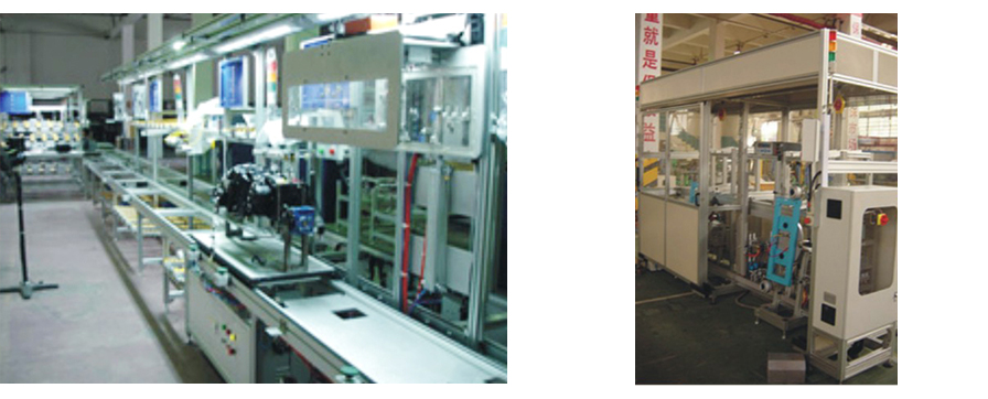 汽车空调、车镜装配与检测生产线采用拧紧,密封性测试,自动摇折摆动、镜面检测等设备,运用条码数据库管理。